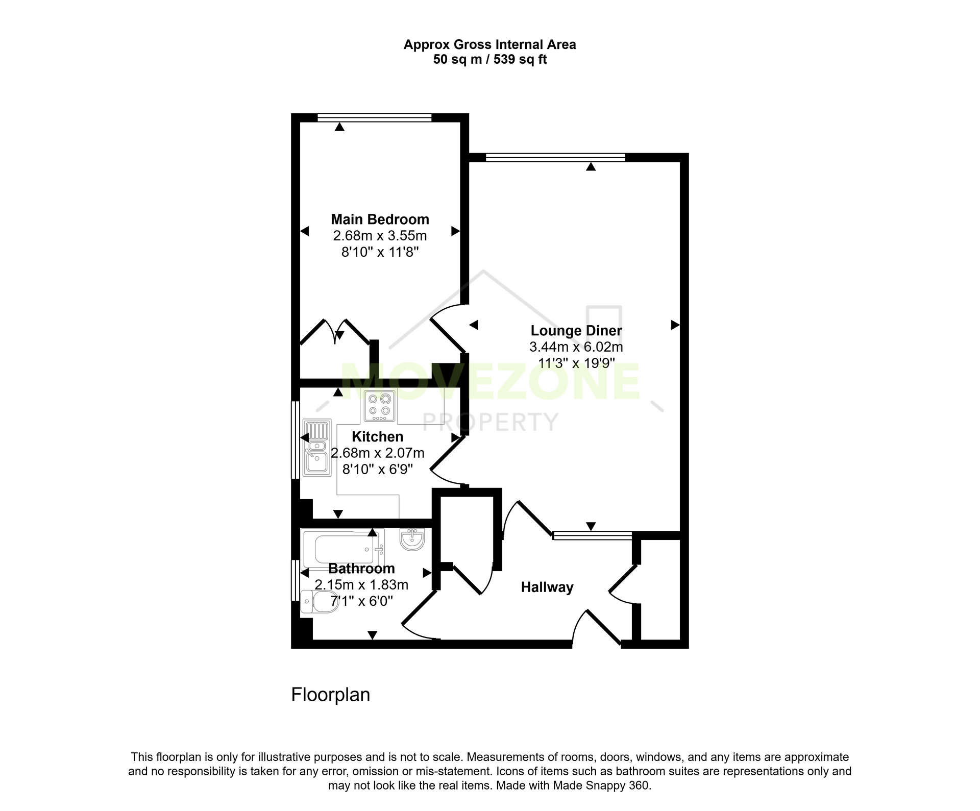 The accommodation comprises a spacious entrance hallway with storage, a bright lounge with floor length windows allowing plenty of natural light, a well proportioned double bedroom with built in storage, a fitted kitchen, and a separate bathroom. Additional benefits include a garage, providing secure parking or useful extra storage.