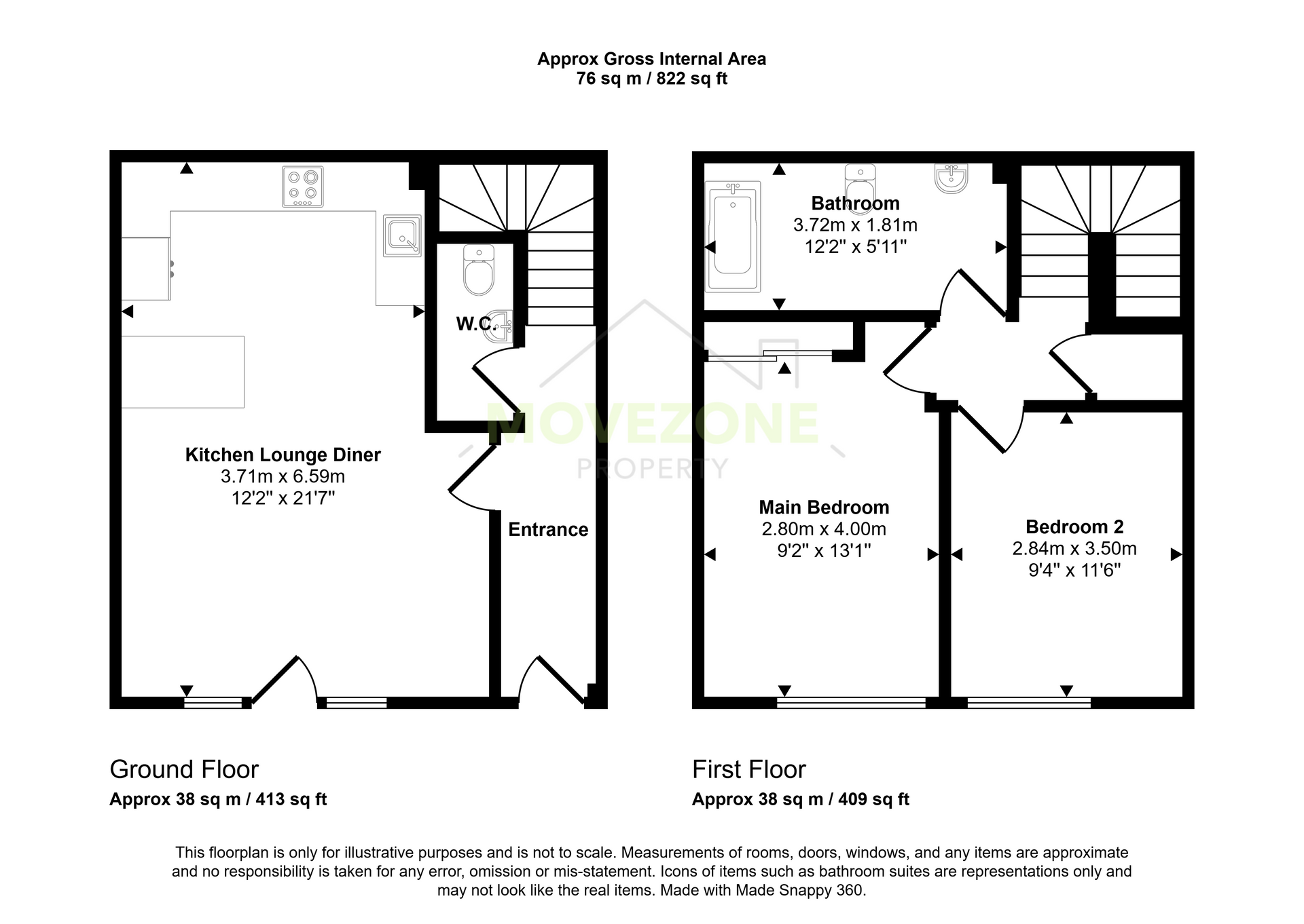 The property comprises two double bedrooms, a large modern bathroom, and a convenient downstairs WC. The ground floor features a bright open-plan living space with patio doors leading out to a small private area, perfect for a table and chairs, along with a modern white fitted kitchen complete with appliances. To the front, there is a well maintained communal garden, providing additional outdoor space to enjoy. Permit parking is available on the main street, and bike storage also offered.