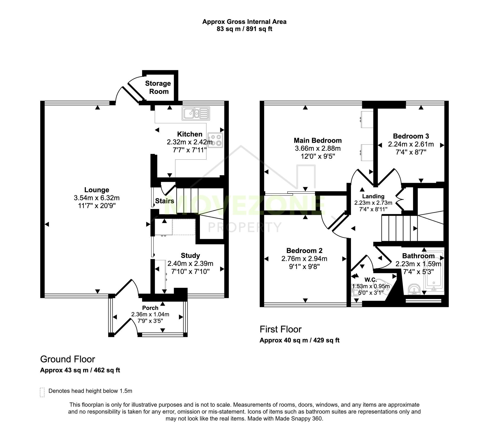 Upstairs, the property features three generously sized bedrooms, a family bathroom, and a convenient separate W/C.